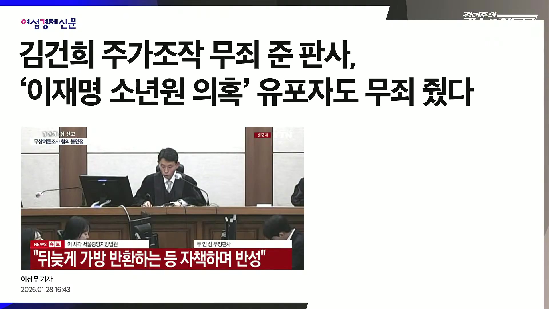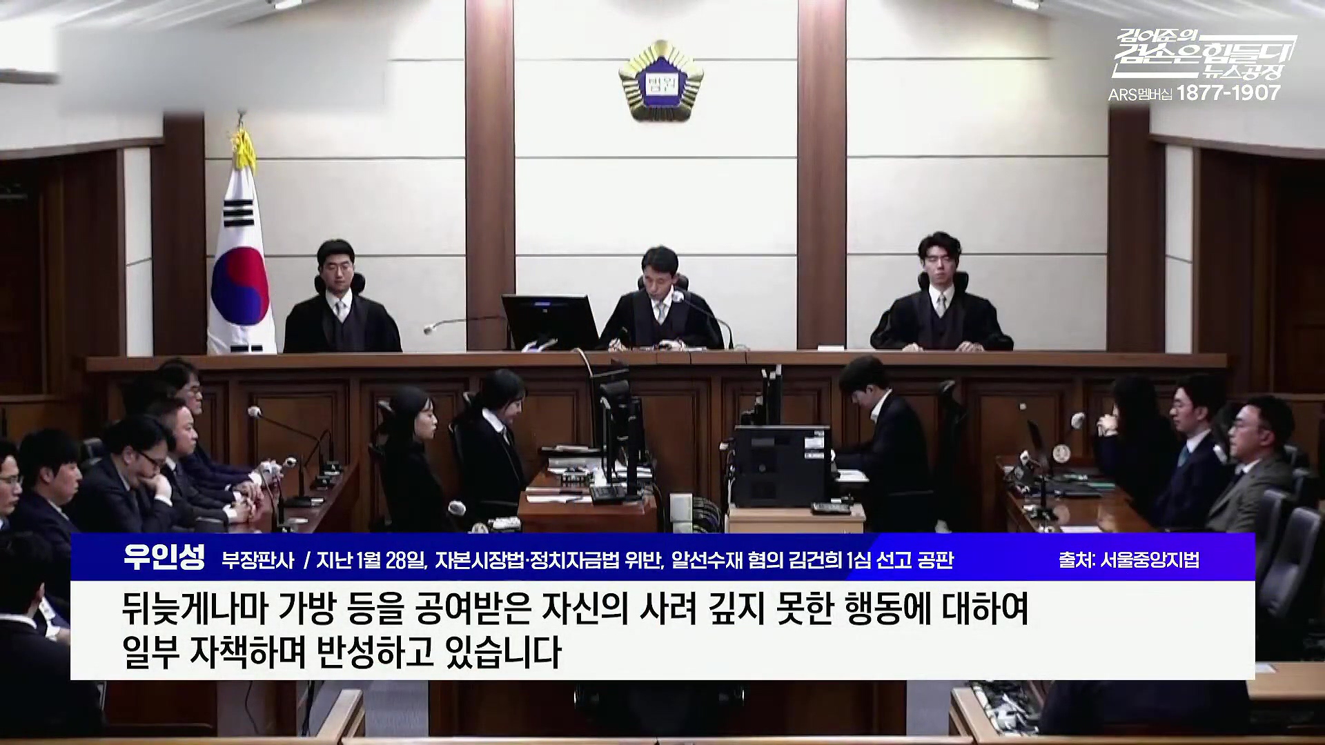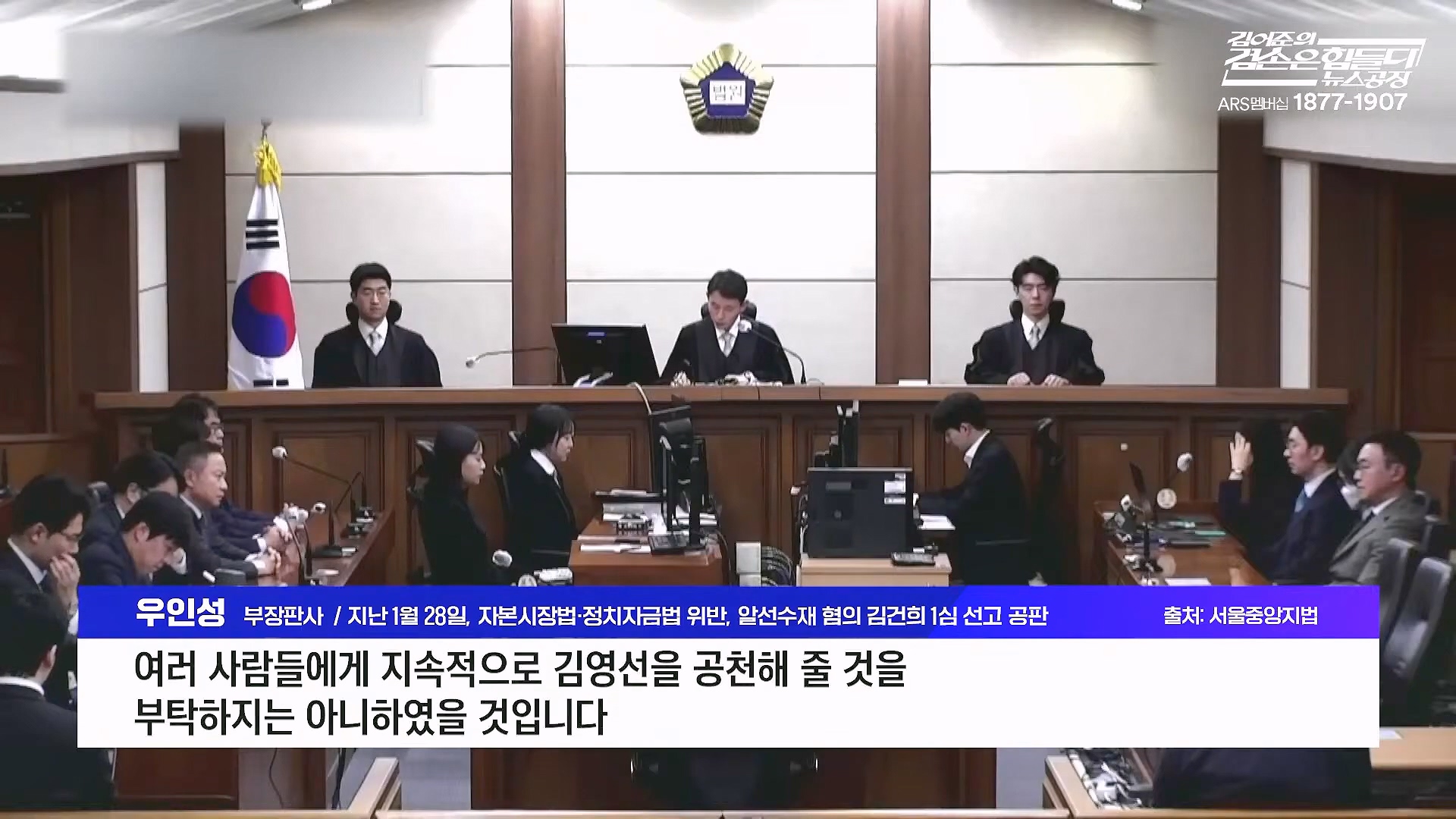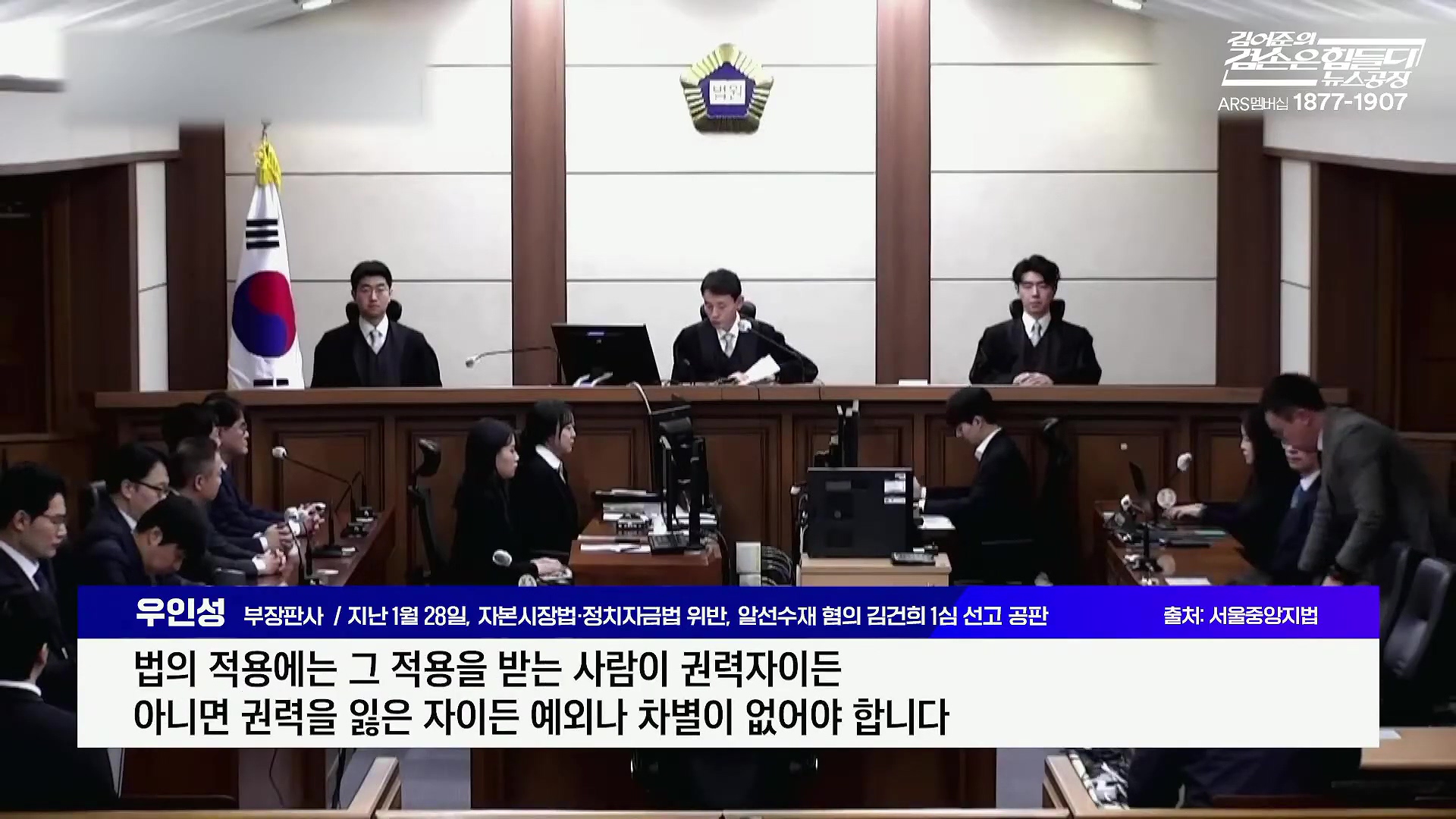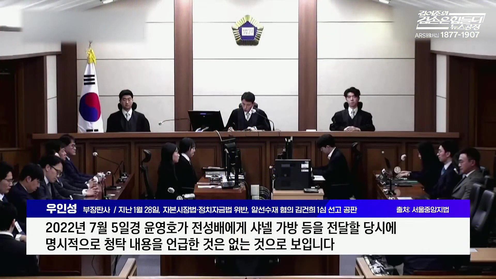 부장판사 / 지난 1월 28일, 자본시장법·정치자금법 위반, 알선수재 혐의 김건희 1심 선고 공판