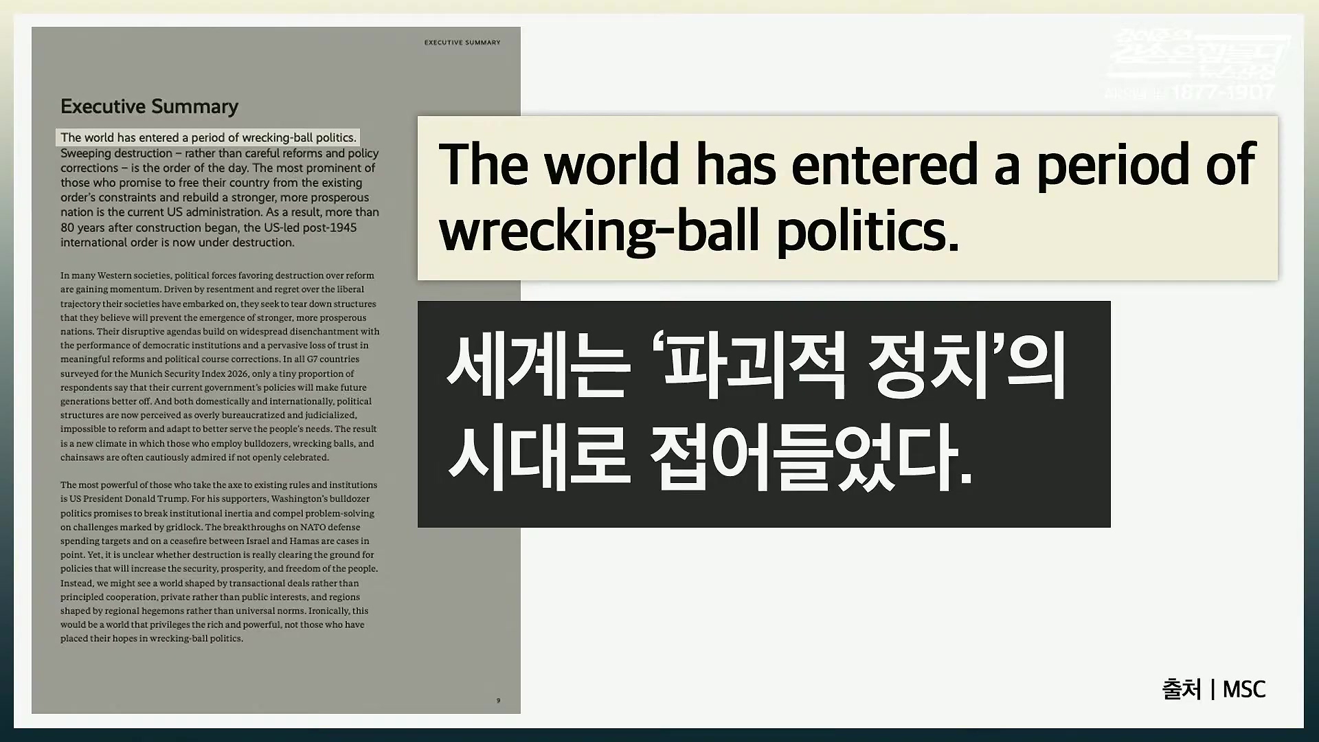 2026년 뮌헨 안보 보고서, 국제정세 '붕괴' 규정... 왜?