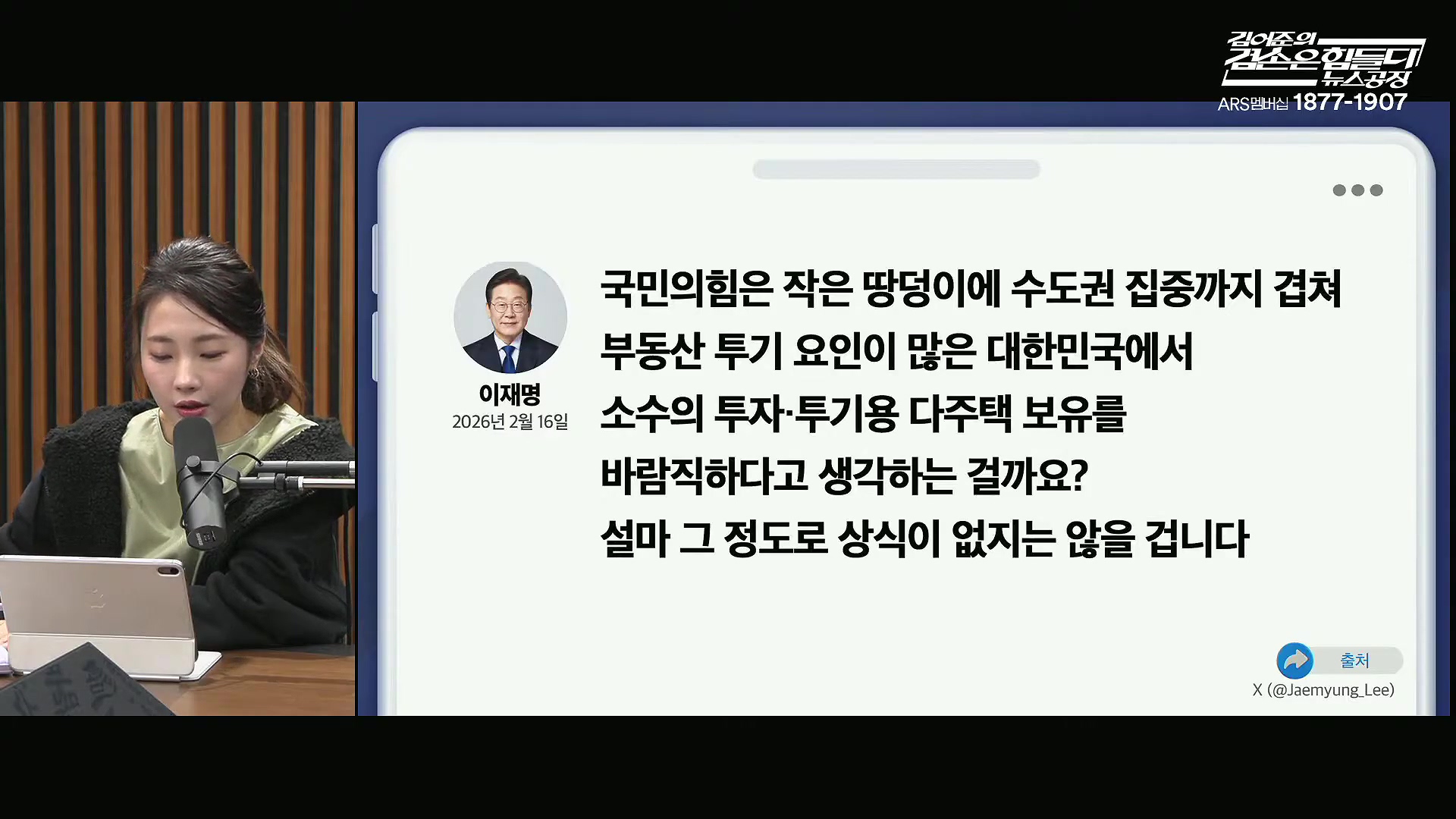 대통령이 X에 올린 글 때문에 노모의 걱정이 큽니다.