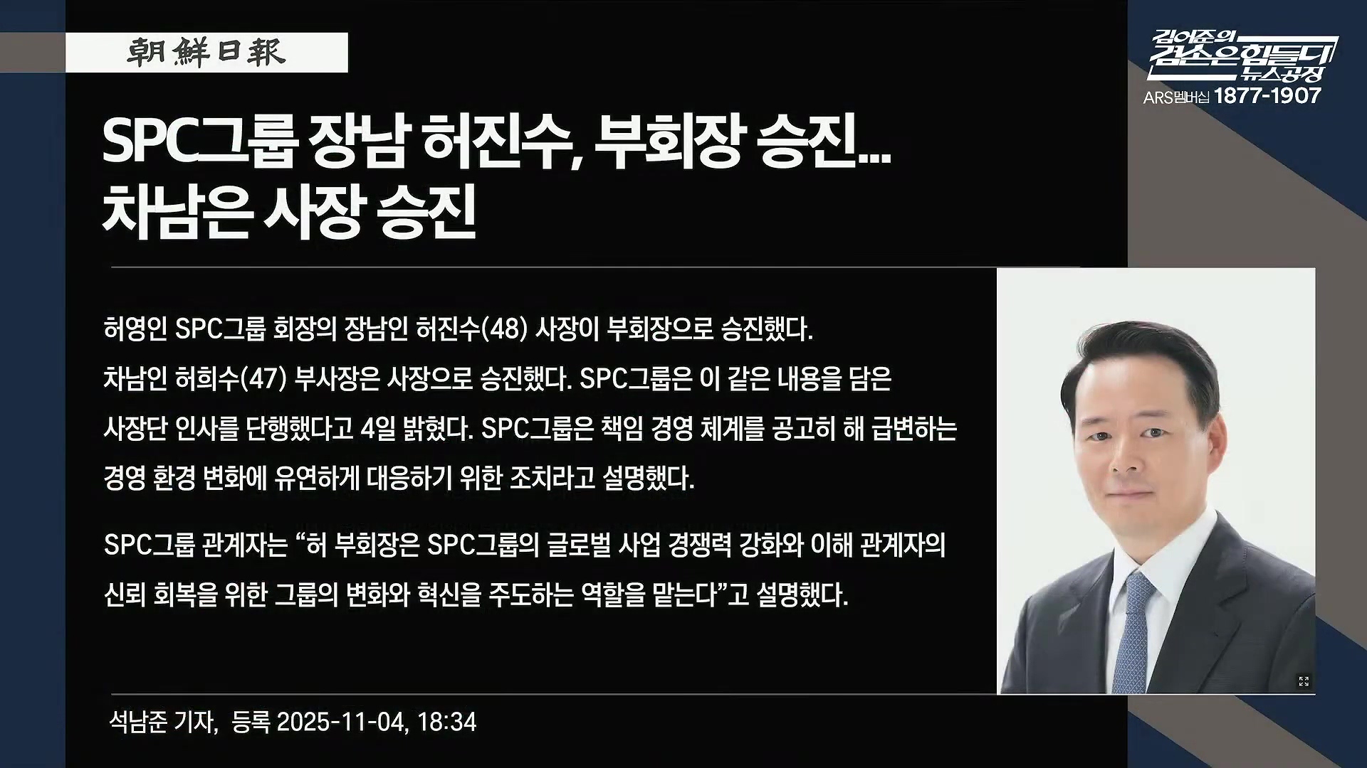 SPC그룹 장남 허진수, 부회장 승진... 차남은 사장 승진