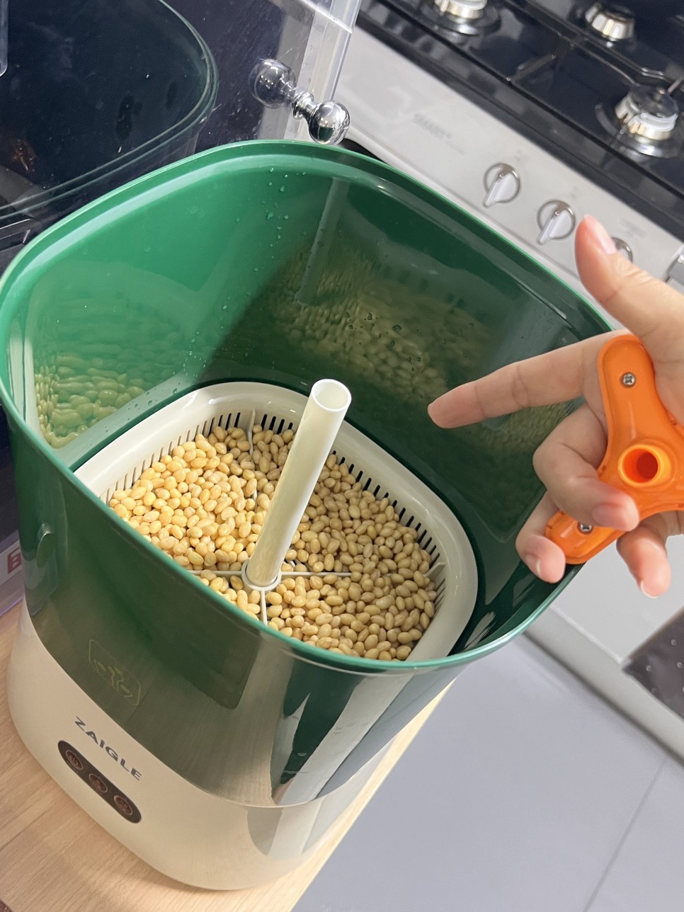 저는 콩나물시루대신, 자이글이라는 콩나물 키우는 기계를 사용했어요.