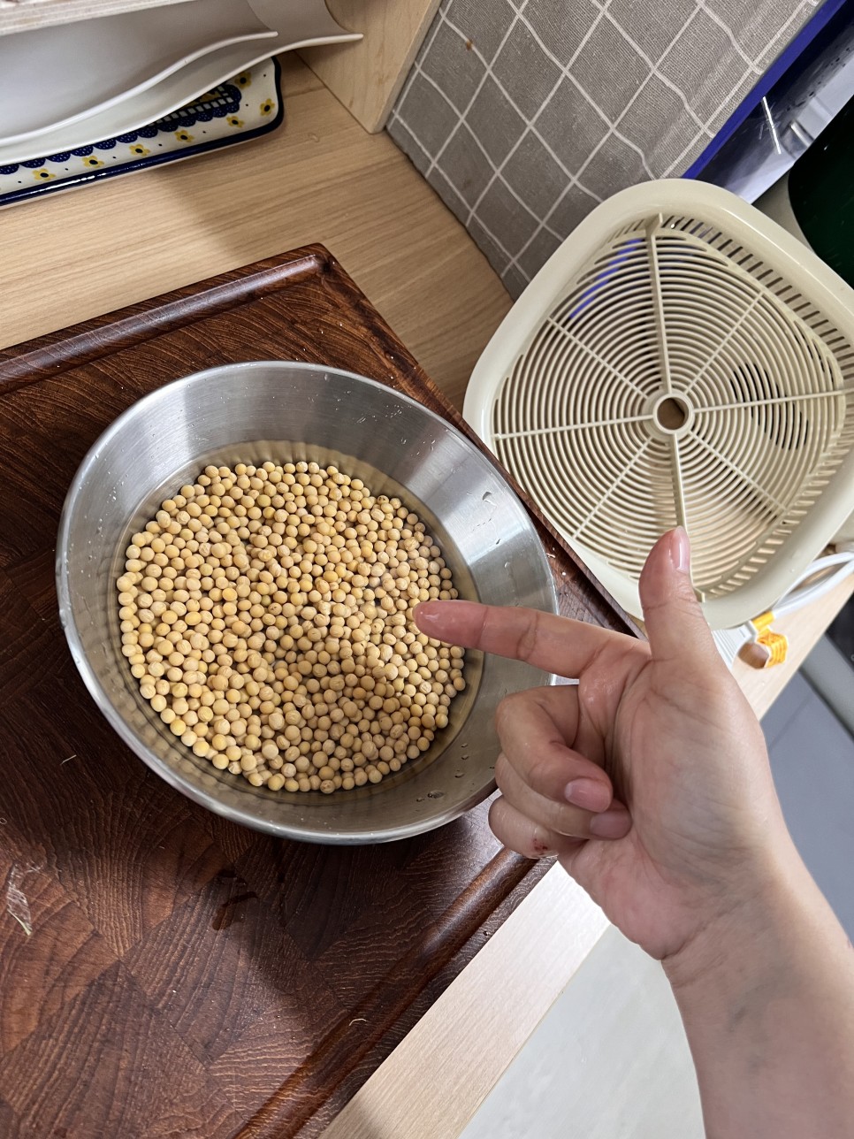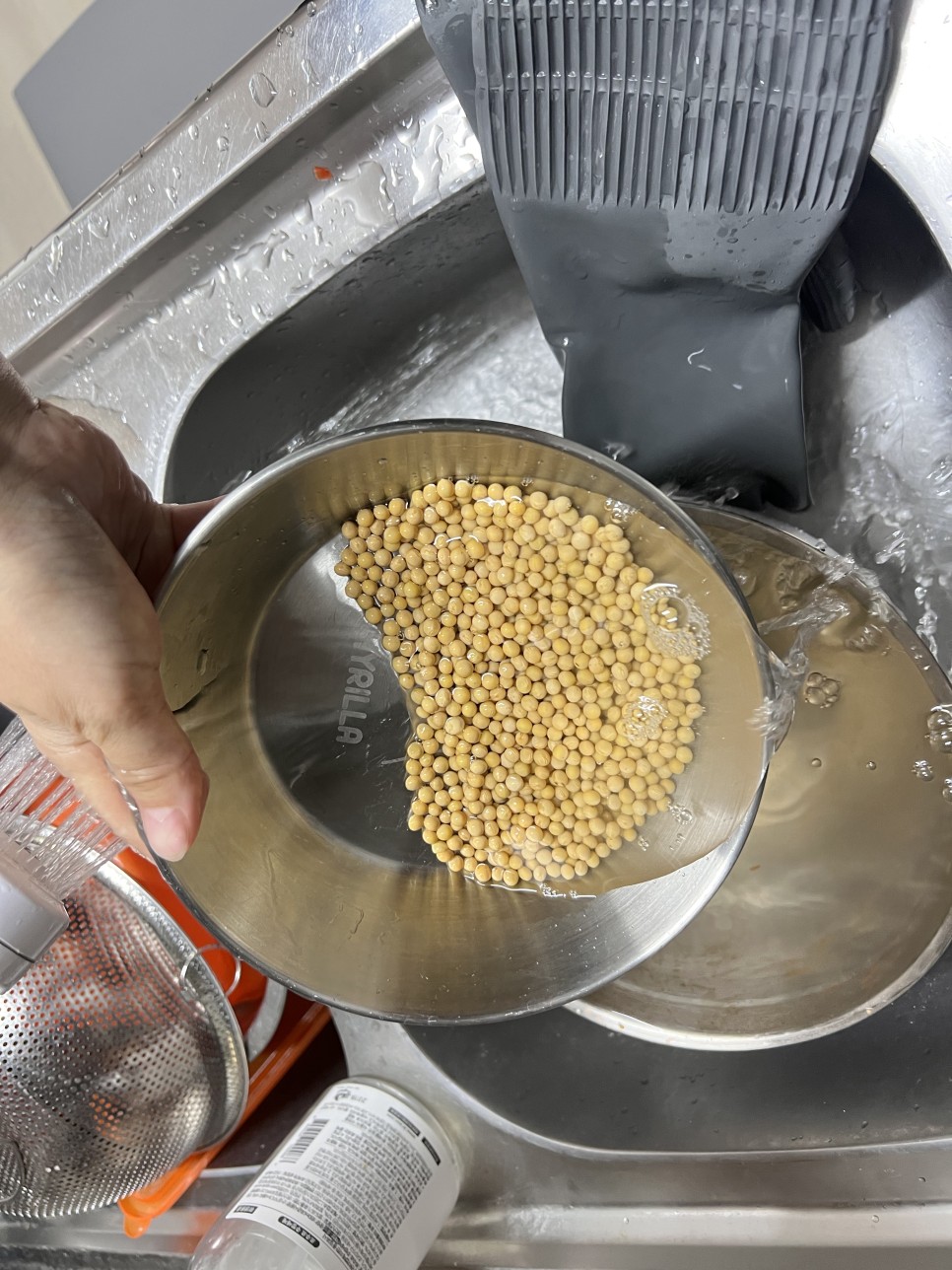 콩을 놓기 전에 먼저 불리는 작업을 해야 합니다.