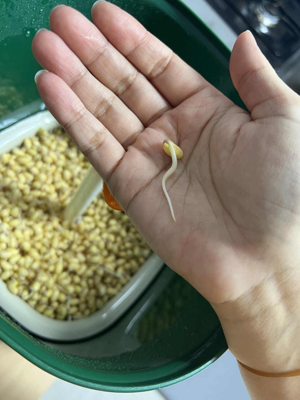 그러고나면 처음보다 콩이 조금 더 커진 모습이에요.