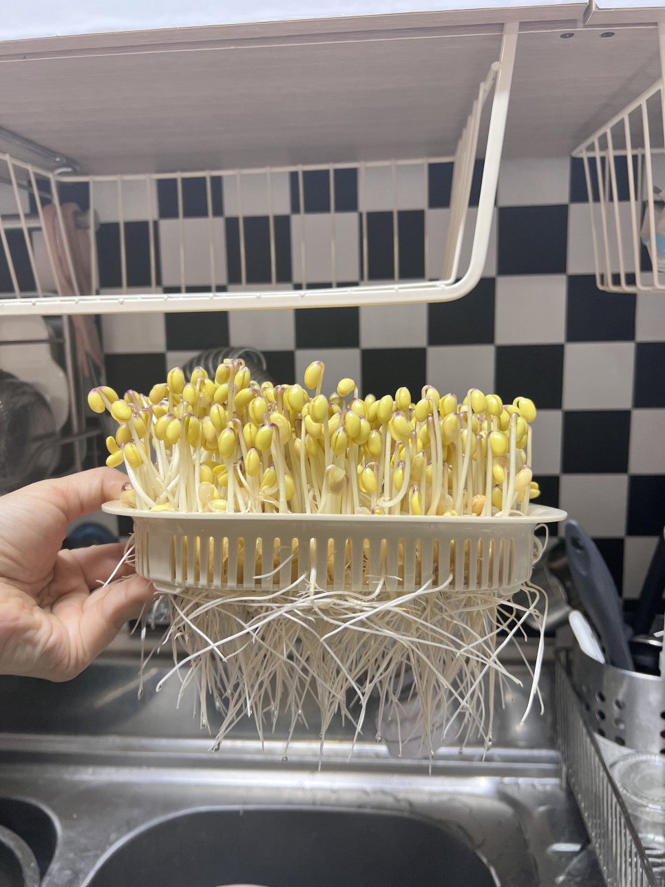 다 키운 콩나물이에요. 발이 기네요~!