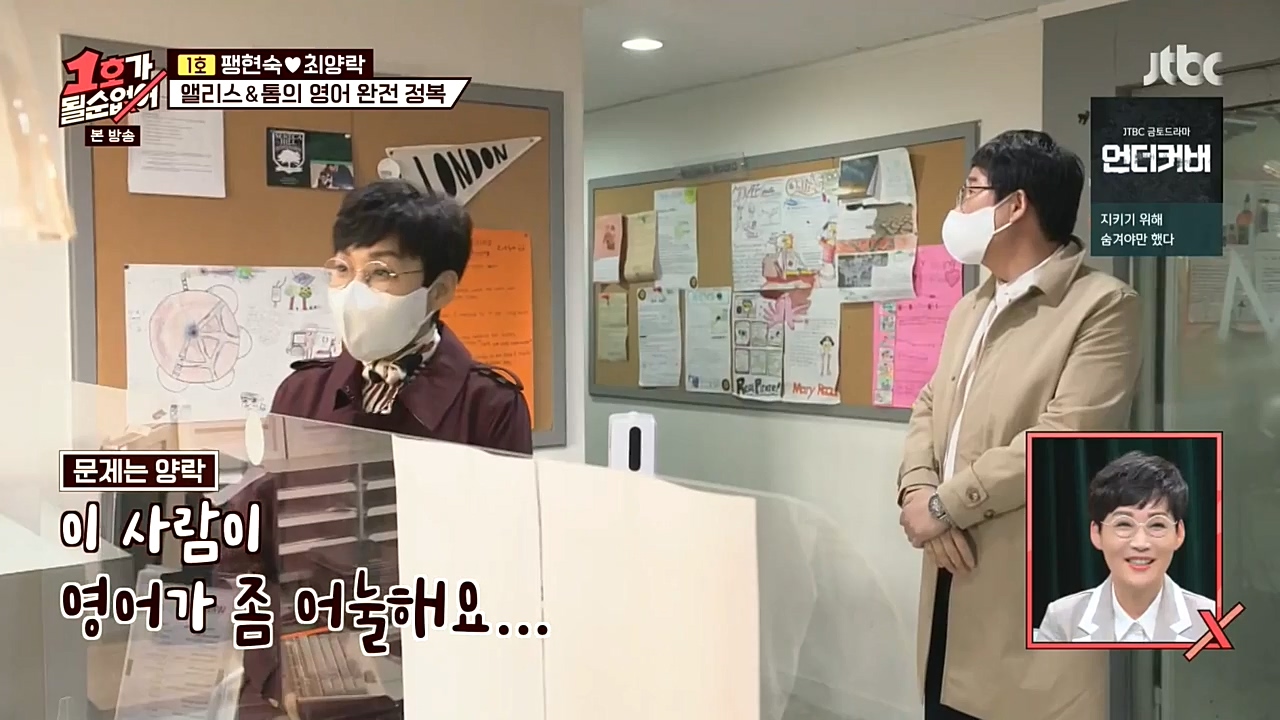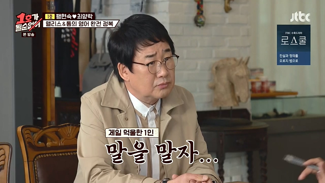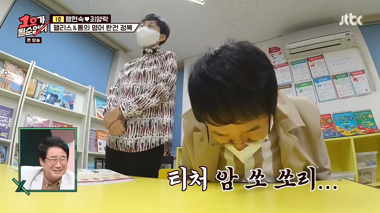 팽락 부부가 영어 회화에 도전했다.18일(일) 밤 10시에 방송되는 JTBC '1호가 될 순 없어'에서는 미국과 수출 계약을 체결한 팽현숙이 영어 수업을 ...
