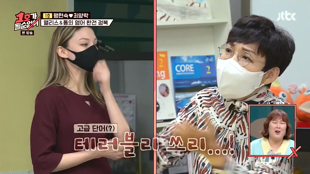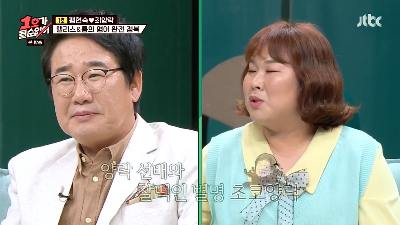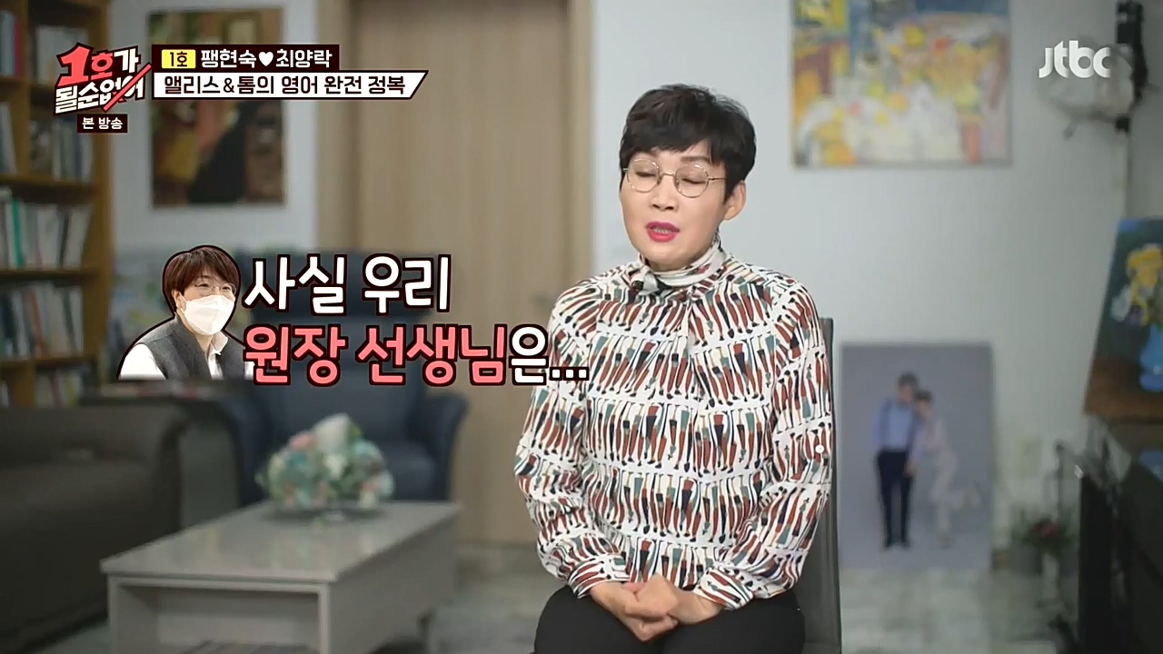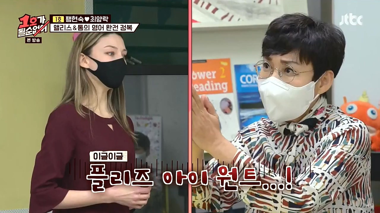 팽락 부부가 영어 회화에 도전했다.18일(일) 밤 10시에 방송되는 JTBC '1호가 될 순 없어'에서는 미국과 수출 계약을 체결한 팽현숙이 영어 수업을 ...