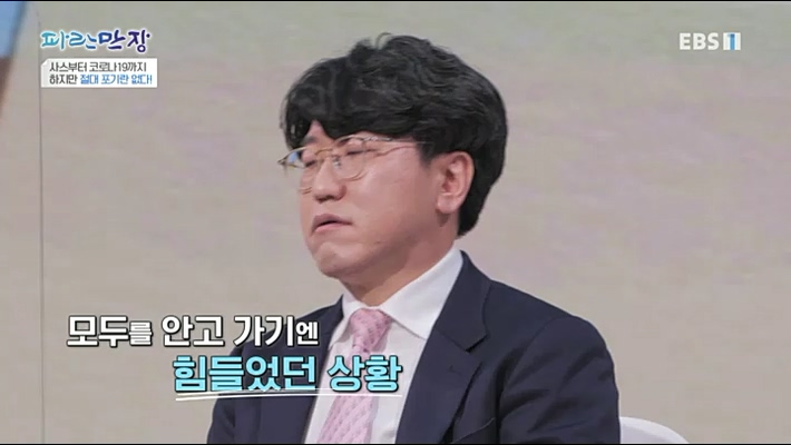 마지막으로 현재 코로나 19 로 힘든 시기를 보내고 있는 외식업계 대표가 스튜디오를 찾았다 . 그는 과거 사스 , 메르스 등을 잘 극복했지만 장기화된 코로나 19 로 함께해온 직원들을 떠나보내며 느낀 죄책감을 고백했다 .