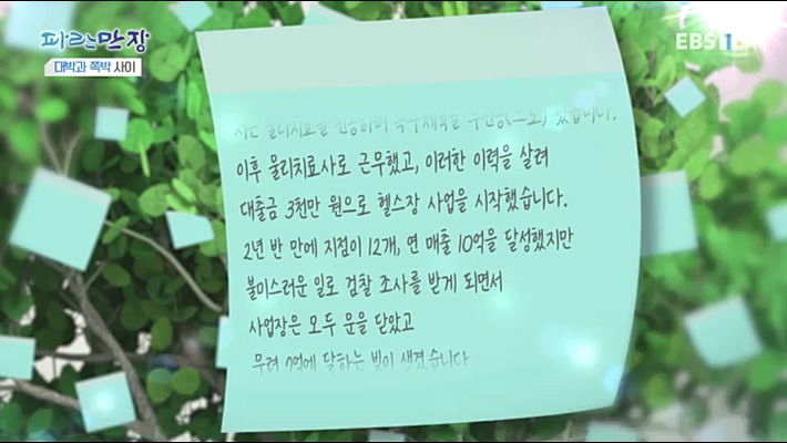 이날 방송에서는 과거 헬스장 사업으로 승승장구하다가 하루아침에 7 억 원의 빚이 생겼던 CEO 가 출연한다 . 하지만 재기에 성공했다는 CEO. 과연 그를 다시 일어서게 한 힘은 무엇이었을까 ?