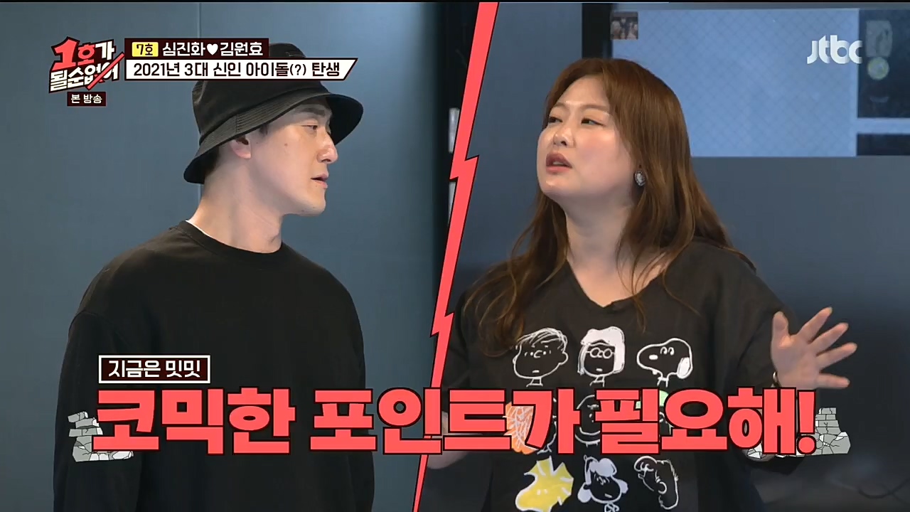 '1호가 될 순 없어'에서 오랜 꿈을 이루기 위해 새로운 도전에 나선 팽현숙과 그룹 다비쳐를 결성한 김원효를 지원 사격하기 위해 나선 심진화의 모습 ...