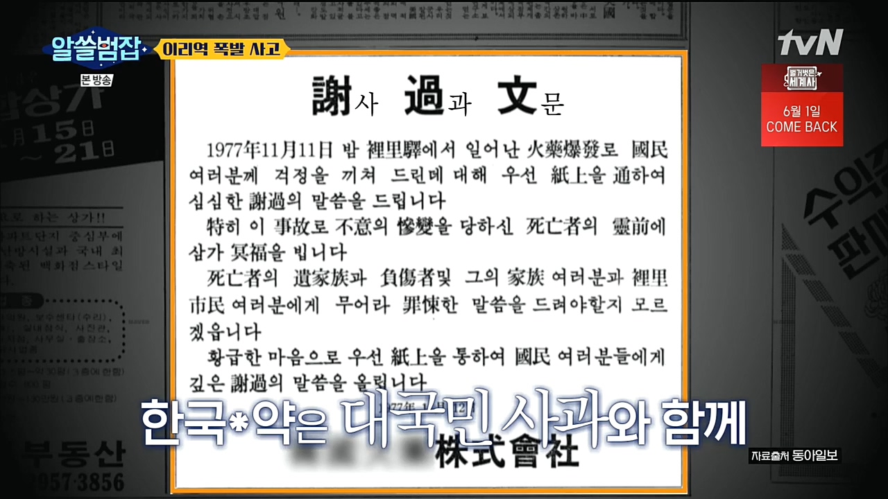 * 이리역 폭발사고, 집단학살 보스니아 내전까지 방송 잘봤습니다.
