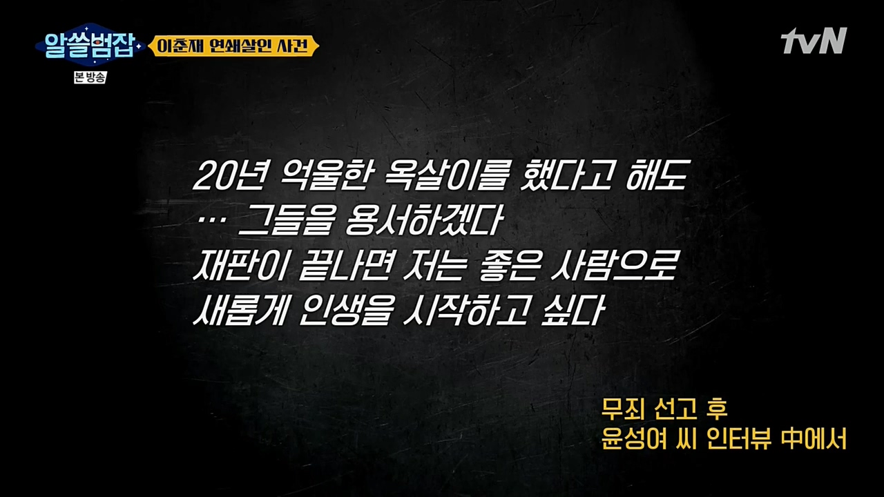 '알쓸범잡' 이춘재 연쇄살인 사건, '무죄' 윤성여 씨의 재심 방송을 보고나서...
