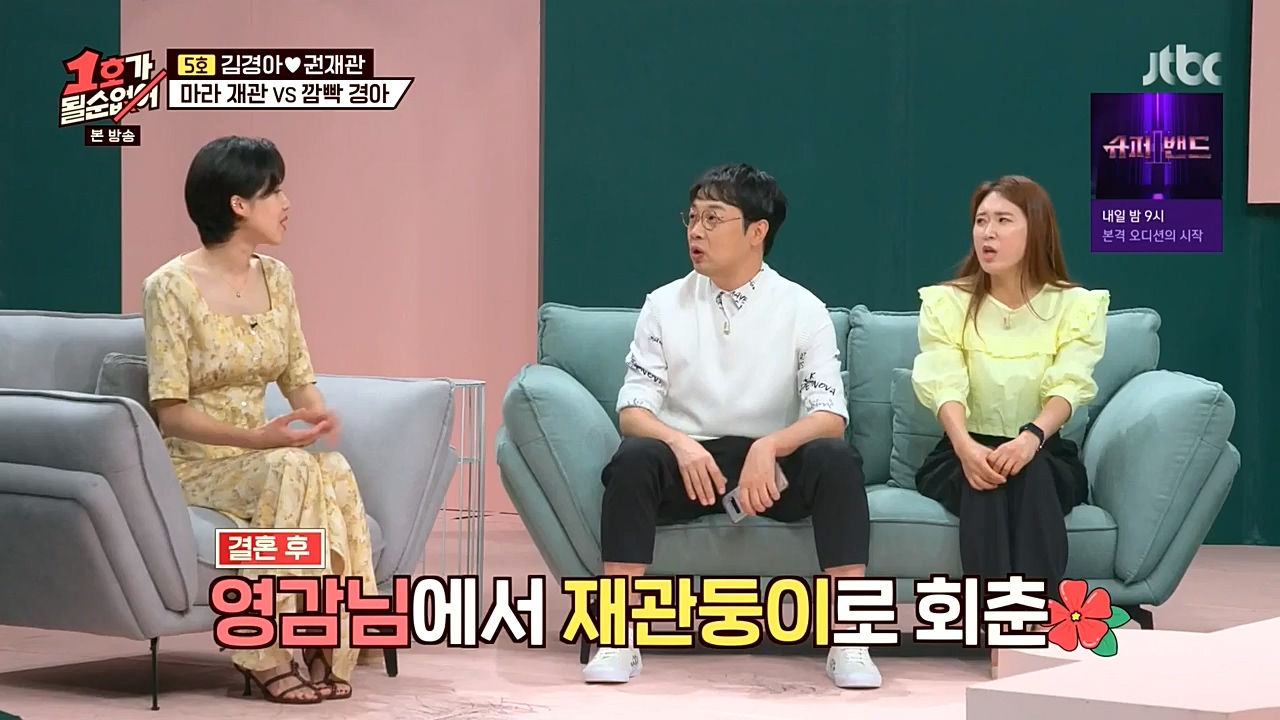 사진=JTBC '1호가 될 순 없어' 방송화면 캡처'1호가 될 순 없어'에서 톡톡 튀는 코미디언 부부들이 폭소를 유발하는 각양각색 일상을 공개했다.4일 ...