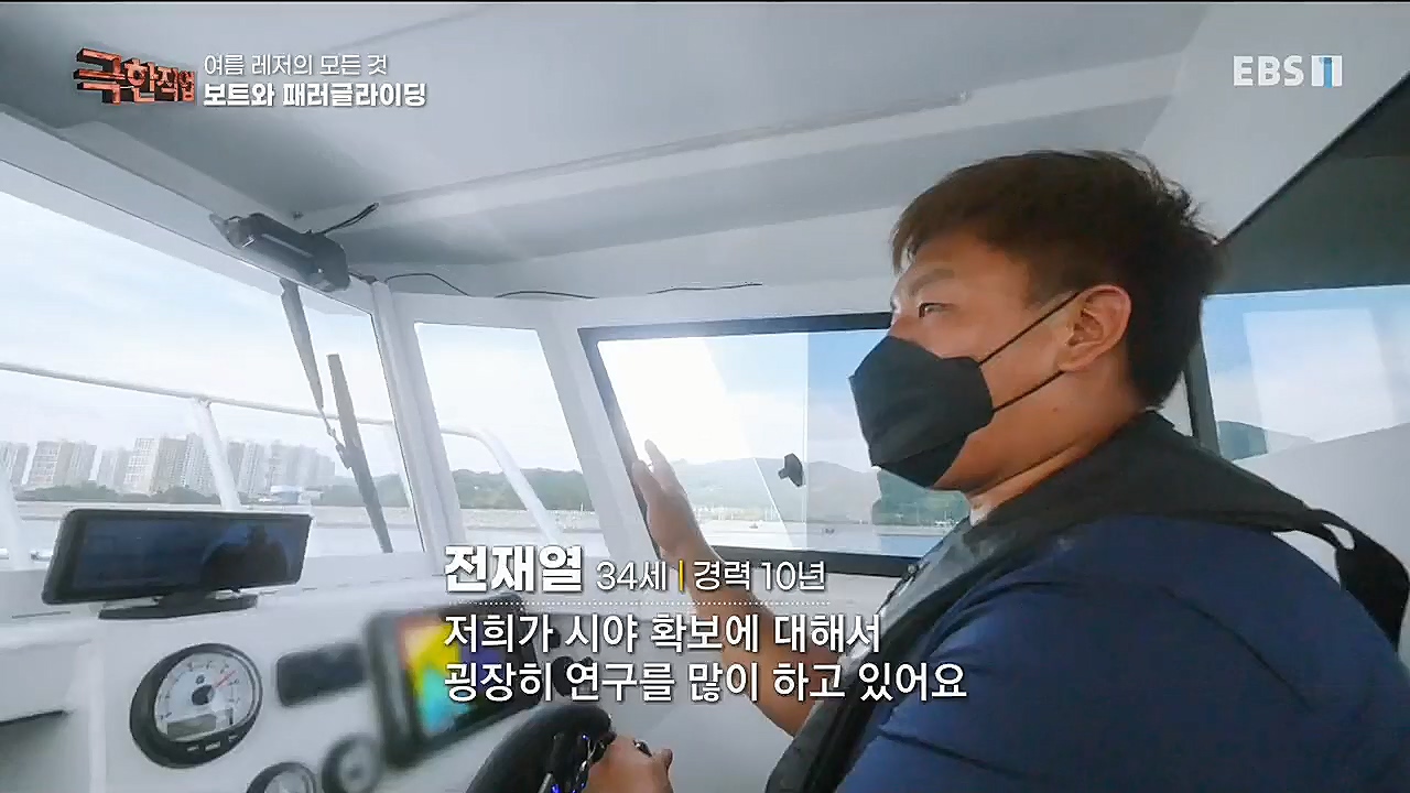 오늘(8월 7일, 토요일) 저녁 EBS1TV 시사교양 프로그램 <극한직업>에서는 '여름 레저의 모든 것 보트와 패러글라이딩' 편이 방송된다.