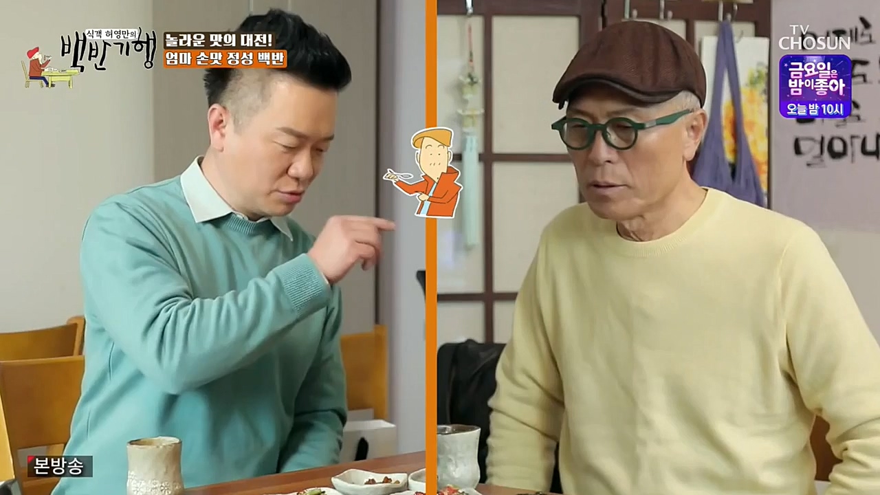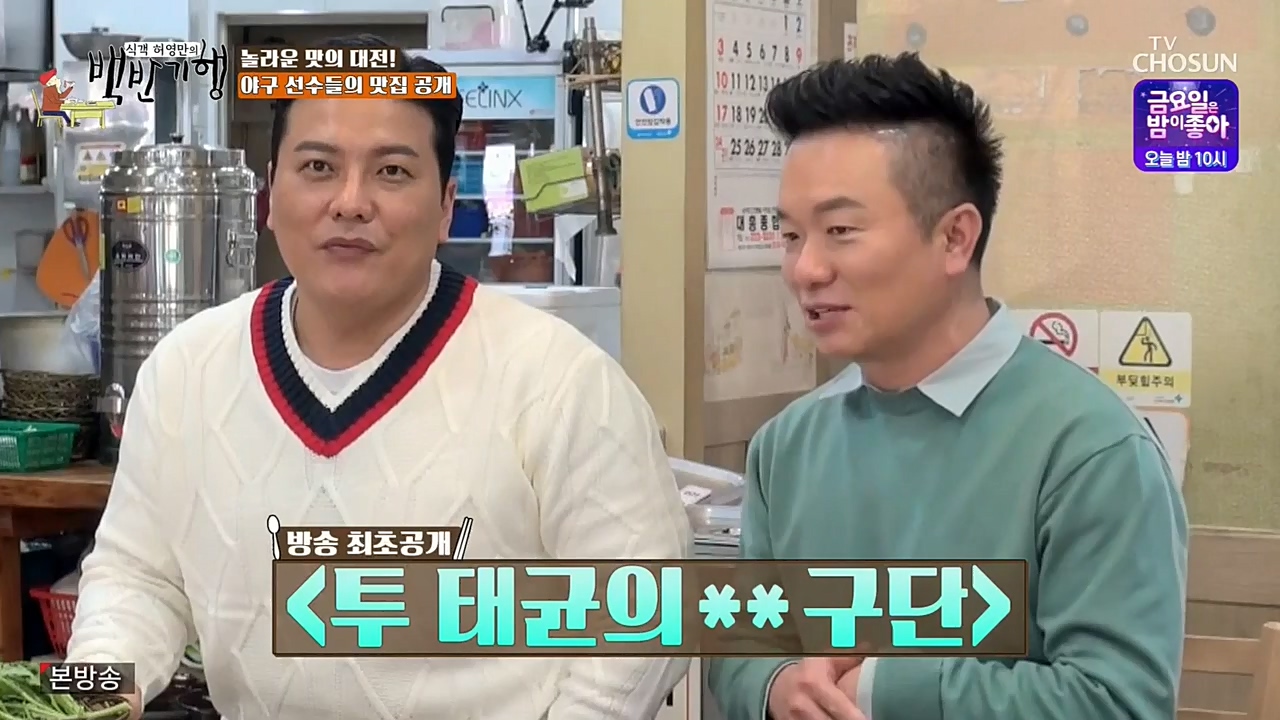 12일 방송되는 TV조선 '식객 허영만의 백반기행'(이하 '백반기행')에서는 만능 엔터테이너 컬투 김태균, 한화 이글스 출신 전 야구선수 김태균과 함께...