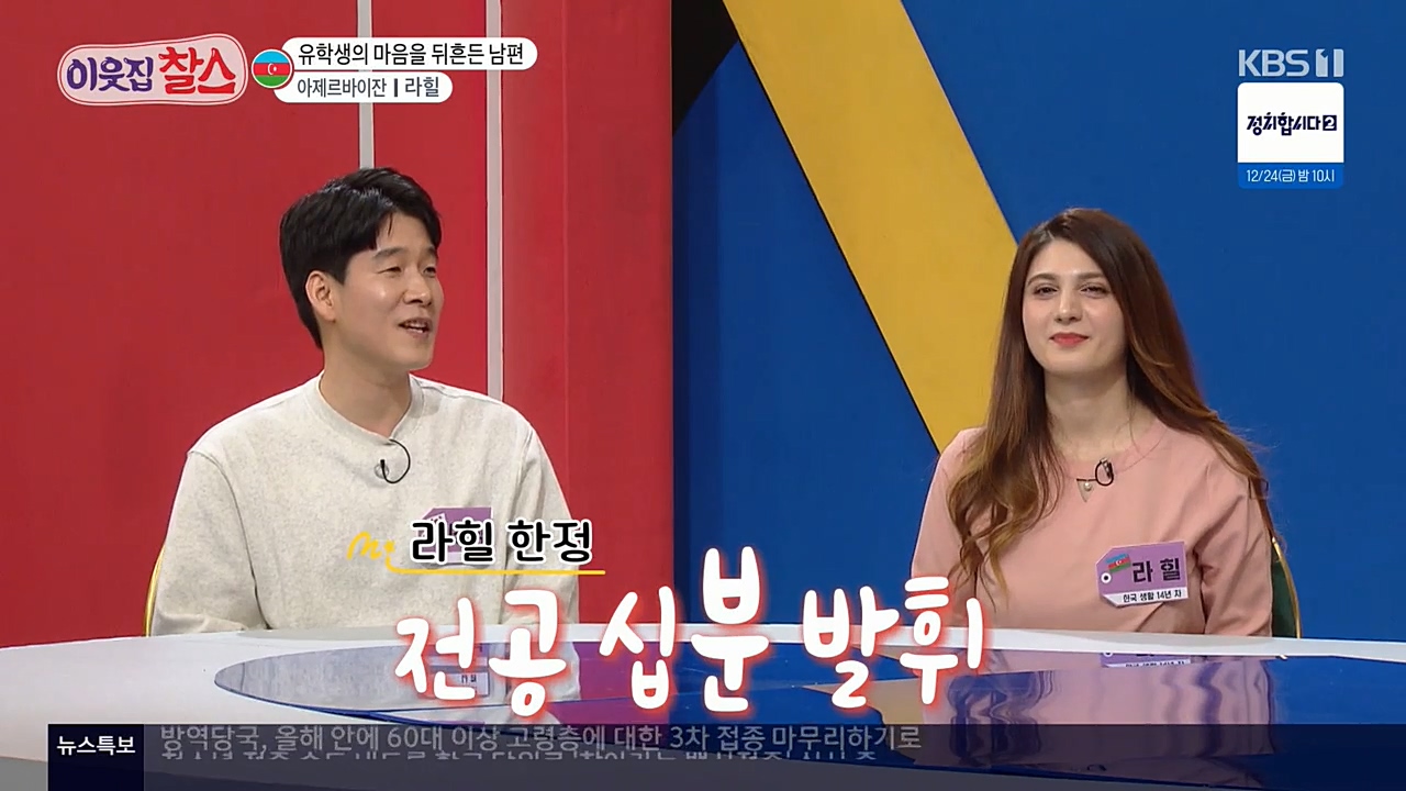 21일 방송되는 KBS1 '이웃집 찰스'에서는 아제르바이잔에서 온 능력자 엄마 라힐의 이야기를 만나본다. 라힐은 아제르바이잔 명문대에서 한국어를...