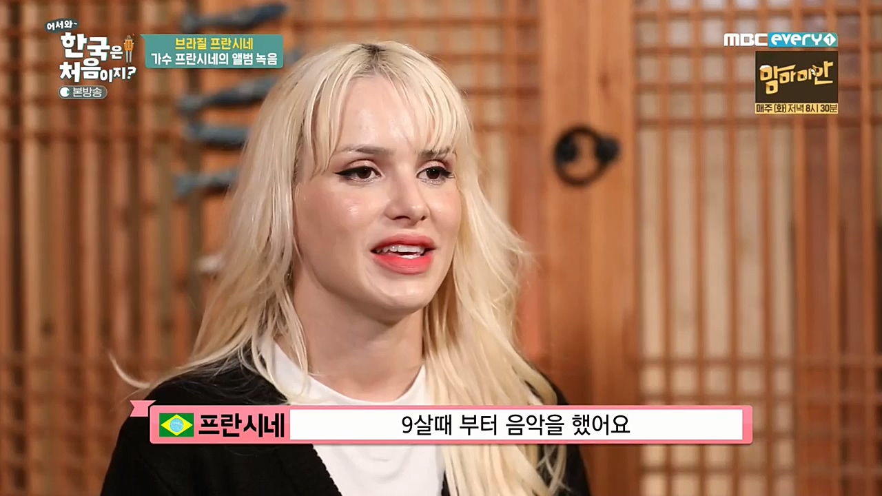 브라질 인기 가수 프란시네가 '한국 사랑'을 드러낸다. 23일 오후 8시 30분 방송 예정인 MBC 에브리원 '어서와 한국은 처음이지' 에는 K-컬쳐에 빠진...