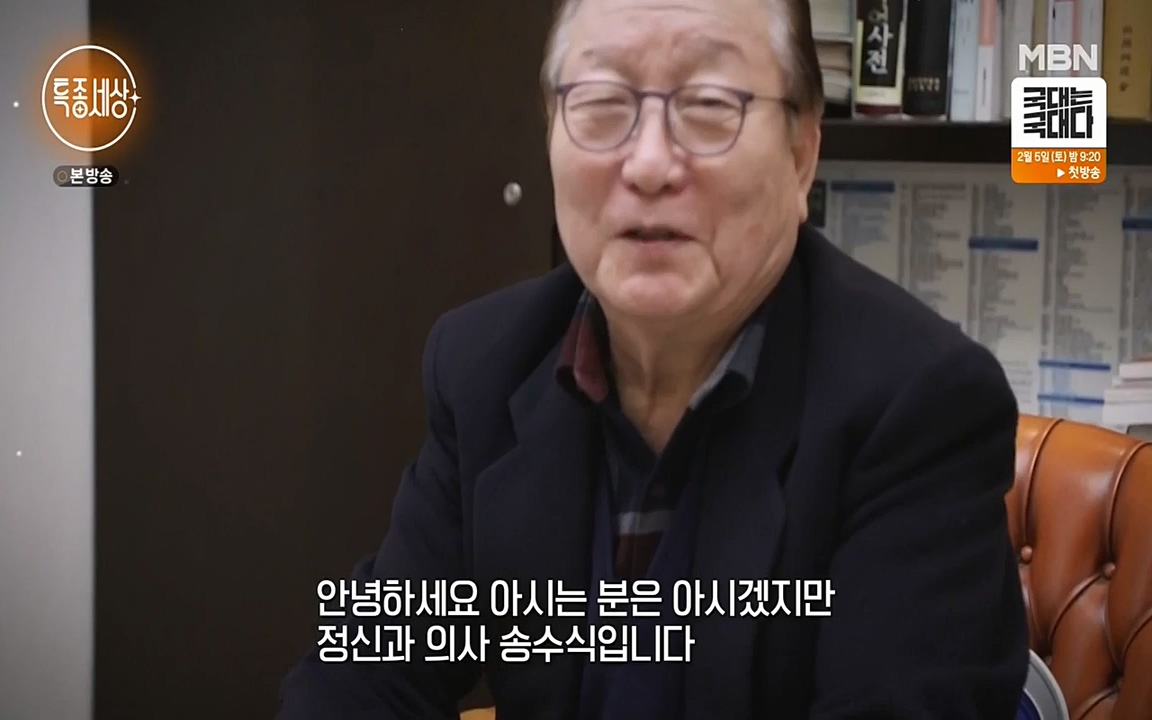 3일 방송된 MBN '현장르포 특종세상'에서는 정신과 의사 송수식의 이야기가 그려졌다. 이날 방송에서 송수식 박사는 의사 생활한지도 50년이 넘었다고...