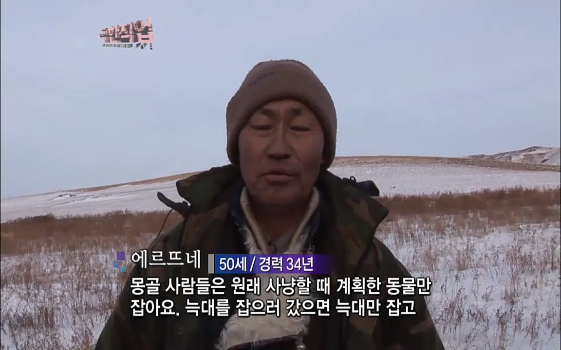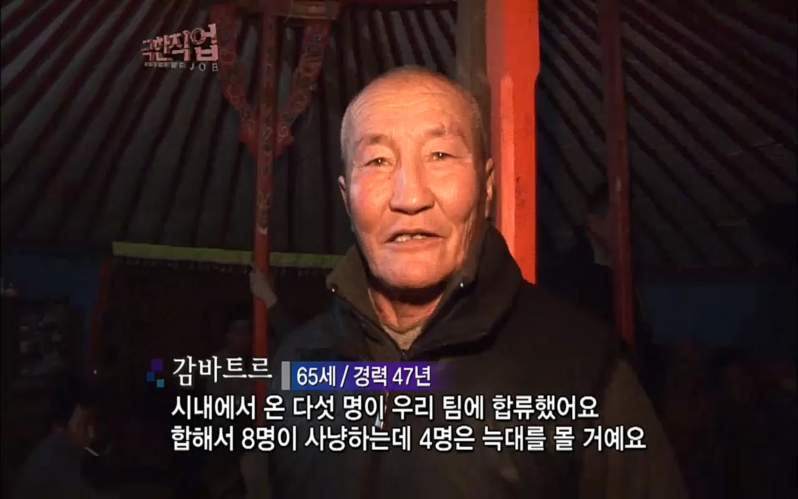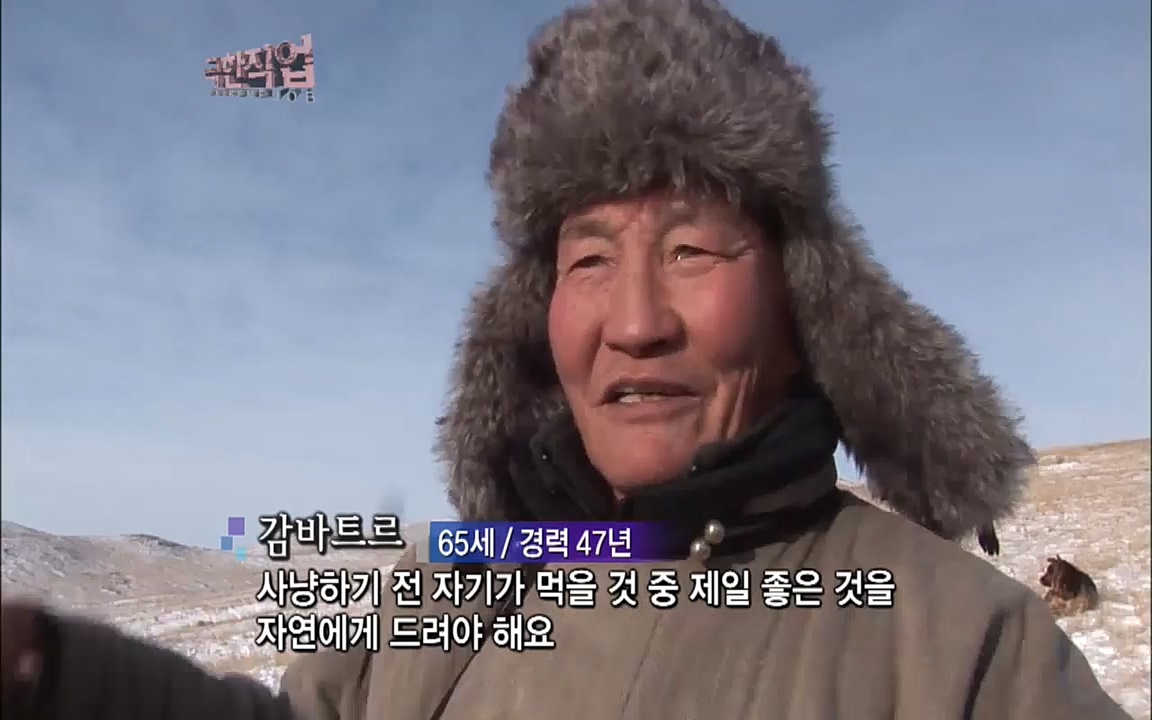 유목민·독수리 사냥꾼 만나다 ... 8kg에 달하는 독수리를 팔에 얹고 훈련을 시키는데 야생 늑대를 사냥할 때 들려오는 야생의 숨소리가 긴박한 느낌을...
