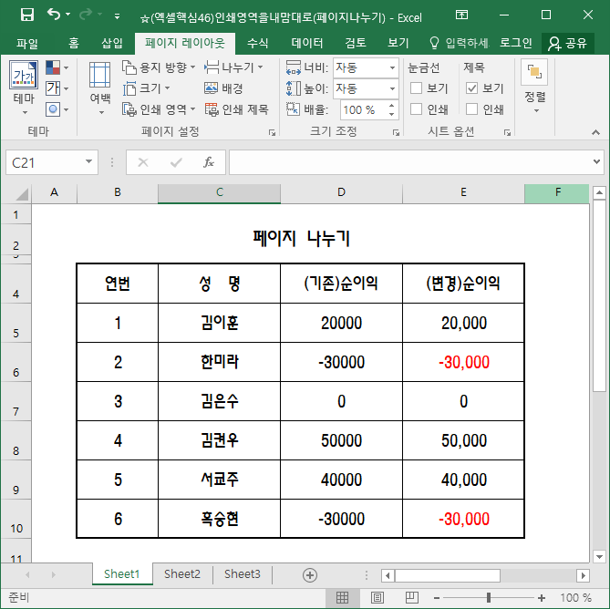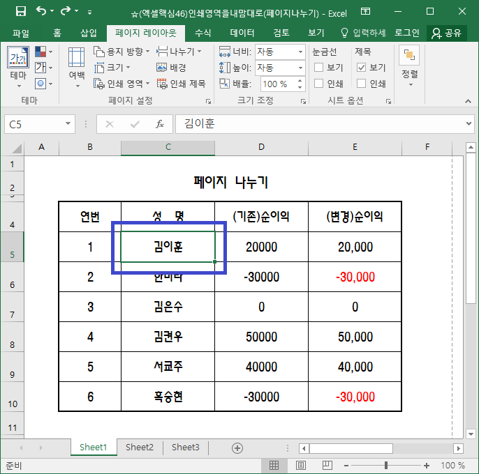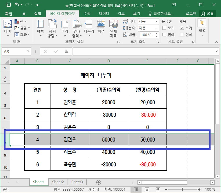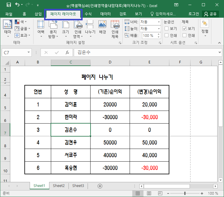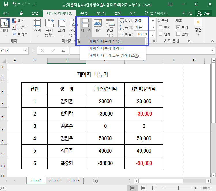 그러면 페이지 나누기를