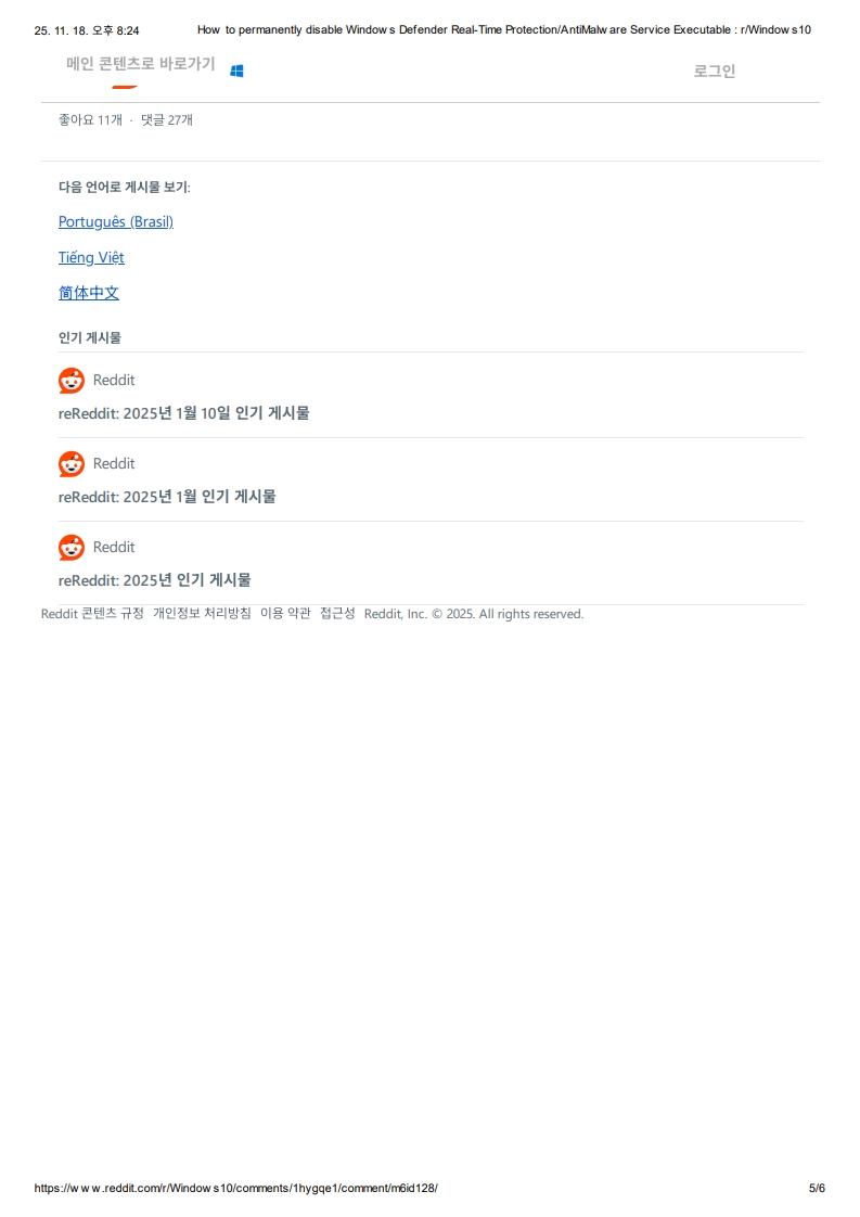 Reddit 콘텐츠 규정 개인정보 처리방침 이용 약관 접근성 Reddit, Inc. © 2025. All rights reserved.