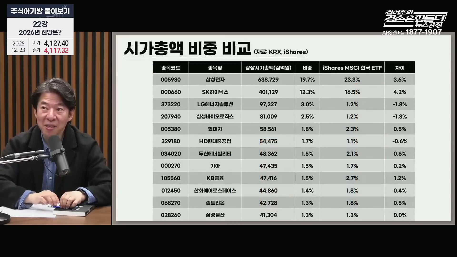 시가총액 비중 비교 (자료: KRX, iShares)