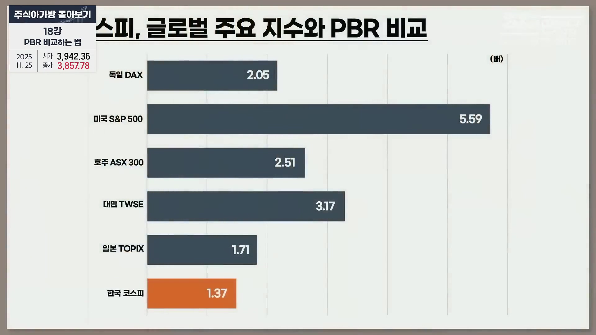 국가별 주요 지수 PBR 현황, 한국 코스피 가장 저평가