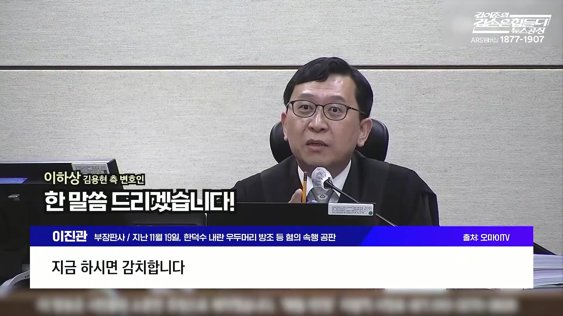 이진관 부장판사/지난 11월 19일, 한덕수 내란 우두머리 방조 등 혐의 속행 공판